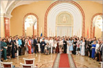 Церемония прошла в зале торжеств областного правительства. Врио губернатора Евгений Солнцев лично вручил нагрудные знаки и удостоверения 100 победителям.