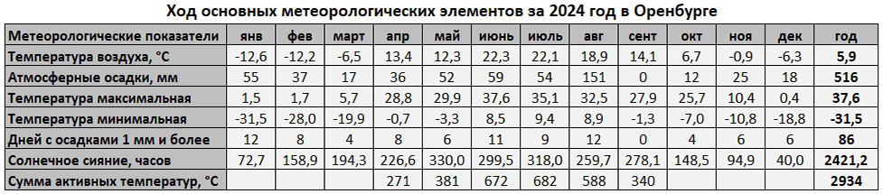 Метеорологические итоги 2024 года в Оренбурге