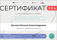 - Современные образовательные технологии в условиях трансформации университетского пространства (2022, право на ведение профессиональной деятельности в сфере высшего образования)