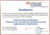 - "Подготовка членов (экспертов) для работы в региональной предметной комиссии при проведении государственной итоговой аттестации по образовательным программам среднего общего образования" по предмету "Иностранный язык" (английский язык) (2024)