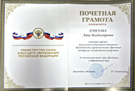 Фотография Павловой А.В. дважды занесена на Доску почета ОГУ (2015, 2023).