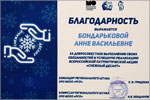 Анна Бондарькова, обучающаяся группы 19Мен(бп)ОП награждена благодарностью за добросовестное выполнение своих обязанностей и успешную реализацию Всероссийской патриотической акции «Снежный десант». ››› 09.06.2021