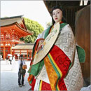 Junihitoe: 12-слойное кимоно, одеваемое в древности придворными дамами. В настоящее время такое кимоно носится только в самых официальных случаях (императорская свадьба, церемония возведения на престол и т.п.). |