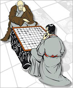 Мурасаки Сикибу (Murasaki Shikibu), фрейлина императрицы, в XI веке написала новеллу, в которой упоминается о том, что игра в го — это обычное развлечение мужчин и женщин аристократов. В одной из сцен новеллы принц Гэндзи (Genji) подсматривает за партией между леди Уцусэми (Utsusemi) и другой женщиной. Эта тема была популярным сюжетом в японском искусстве.