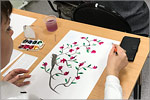 Students of OSU, schools, colleges and other universities have participated in this event. At these days the center conducted lessons on the finest decorative and applied arts tsyanchzhi (剪纸). All participants had an opportunity to cut out of paper a symbol of the coming yearš— a cockš— with the help of special sharp scissors. Workshops on Chinese painting gokhua (国画) were also interestingš— guests learned to draw a cherry plum meykhua (梅花).