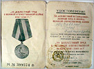 Удостоверение к медали "За доблестный труд в Великой Отечественной войне 1941–1945 гг." Юдковского П.А. 25.08.1946 г.