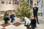 Обучающиеся студии «Спектр» совместно с обучающимися архитектурной школы изготовили игрушки для новогодней елки в виде фонариков и знаков зодиака, рядом с елкой расположился главный герой — тигр, символ 2022 года.