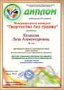 В декабре 2021 года на Международном творческом конкурсе «Сказочные фантазии» в Оренбурге обучающаяся студии «Спектр» Елизавета Казанова заняла I место в номинации «Декоративно-прикладное творчество» с диптихом «Потерянный мир». На международном конкурсе «Творчество без границ» в Нижнем Новгороде Елизавета Казанова заняла III место в номинации «Рисунок» с работой «Набережная». Поздравляем Елизавету и руководителя студии А.Г. Гладышеву.