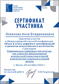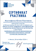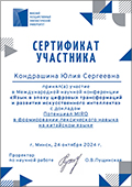 Международная деятельностьМеждународная деятельность кафедры осуществляется по нескольким направлениям. 1. Сотрудничество с зарубежными вузамиВ 2020 году кафедра инициировала проведение телемоста с Южно-Китайским педагогическим университетом г. Гуанчжоу (провинция Гуандун, Китай). Темой диалога стали вопросы различия культур и языки в межкультурной коммуникации. Спикерами со стороны ОГУ выступили доцент кафедры Л.А. Ласица, студенты Юлия Тимирбулатова, Виктория Полякова, Владислав Вебер. В ходе онлайн-встречи участники обсудили заимствования в русском и китайском языках, культурные особенности двух стран, правила невербального общения и роль языка и культуры в бизнес-коммуникации. Подробнее... С 2023 года кафедра активно сотрудничает с Минским государственным лингвистическим университетом (Беларусь). Проводятся научные и научно-практические мероприятия с участием преподавателей и студентов кафедры английского и китайского языков ОГУ и кафедры истории и грамматики английского языка МГЛУ с целью обмена научной и специализированной информацией, результатами достижений в определенных областях знания. В марте 2024 года состоялся I Международный студенческий научный семинар «Концептуализирующий потенциал языковых единиц», инициированный СНО «Интерпретация мира в языке». В семинаре приняли участие представители СНО Ars Grammatica МГЛУ, в ходе которого студенты и преподаватели обсудили вопросы развития студенческой науки в области методологии и методов современного лингвистического исследования в рамках когнитивистики, теоретической грамматики и лексической семантики. Международный научный семинар собрал около 30 очных и дистанционных участников, свыше 250 слушателей подключились к онлайн-трансляции мероприятия. В апреле 2025 года прошел II Международный студенческий научный семинар «Концептуализирующий потенциал языковых единиц». В семинаре участвовали активисты СНО «Интерпретация мира в языке» Оренбургского государственного университета, СНО Ars Grammatica Минского государственного лингвистического университета, магистранты Мордовского государственного университета им. Н.П. Огарёва и Пермского государственного национального исследовательского университета. Подробнее… В апреле 2024 года кафедра организовала Международную студенческую олимпиаду по иностранным языкам «ЯиК — язык и культура», в число участников которой вошли студенты Минского государственного лингвистического университета. В октябре 2024 года преподаватели кафедры О.М. Осиянова, А.В. Осиянова и студенты Софья Горбачева, Юлия Мустафина, Юлия Кондрашина приняли участие в Международной научной конференции «Язык в эпоху цифровых трансформаций и развития искусственного интеллекта», организатором которой выступил Минский государственный лингвистический университет. 2. Участие в международных форумахРоссийско-казахстанский молодежный форум «Молодые ученые» Доцент кафедры Платова Е.Д. приняла участие в российско-казахстанском молодежном форуме «Молодые ученые», состоявшемся 23–26 ноября 2021 г. в Самаре при поддержке Министерства науки и высшего образования РФ, Информационно-аналитического центра МГУ по изучению общественно-политических процессов на постсоветском пространстве и Самарской региональной общественной организации «Мир молодежи». Ц