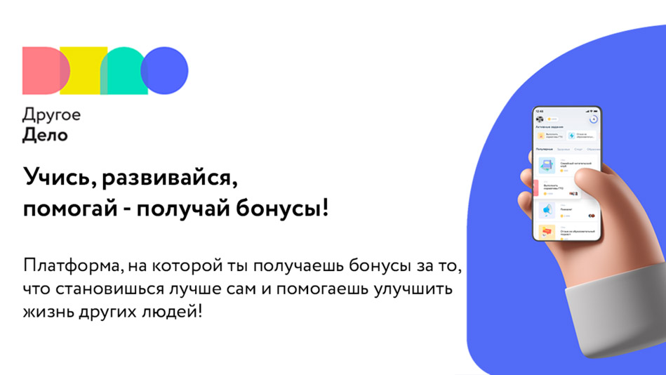 Зарегистрироваться в сервисе «Другое дело» и получить приветственные 300 баллов можно по ссылке. Более подробная информация о проекте размещена на официальном сайте https://drugoedelo.ru/.