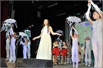 Шоу продолжилось настоящим модным показом. Зал буквально взорвался аплодисментами, когда на сцене одна за другой начали появляться участницы в белых свадебных платьях. Они, словно лебеди, плыли по сцене в белых нарядах. Каждая из них дополнила свое одеяние оригинальной деталью: венком из цветов, сверкающей диадемой, букетом из ярких, словно живых, бабочек.