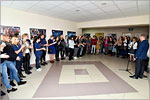 — Готовить выставку начали еще летом, — рассказала студентка четвертого курса факультета филологии и журналистики Наталья Шевчук. — Сами выбирали героев, искали нужную информацию, переводили. Особенно интересно было работать над плакатом, посвященным Александру Шморелю, — работали с книгой Игоря Храмова «Русская душа “Белой розы”».