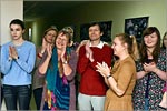 В холле со стенами, увешанными плакатами с изображениями немецких композиторов, литераторов и исторических деятелей, собрались преподаватели факультета филологии и журналистики ОГУ, студенты и гости. Их поприветствовал начальник управления международного сотрудничества Эдуард Ясаков и поблагодарил за работу всех организаторов Дней Германии и гостей — преподавателя Курсов немецкого языка для иностранцев при университете г. Мюнхен Ангелику Марию Йодль, писателя Адреаса Гётца, доцента Башкирского государственного университета Ирину Ганиеву и лектора Германской службы академических обменов в Уфе Алексея Дёрре.