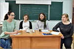 Свое мнение по поводу этого вызова времени высказали иностранцы — лектор Фонда им. Р. Боша Бирте Рихардт и студент по обмену Университета города Мюнхена Тилль Юберрюк-Фриз. Участвовали в мероприятии студенты 3-го и 4-го курсов немецкого отделения факультета филологии и журналистики ОГУ. Немецкие гости говорили на родном языке, а в качестве переводчиков выступили студентки, которым через пару месяцев предстоит защитить диплом по этому направлению подготовки — Анжелика Шпуканич, Светлана Захарова, Ирина Патраева и Валентина Макарова.