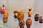 На выставке, открывшейся в ОГУ, можно увидеть коллекционные подборки мастеров народного промысла с Украины и России (гжель и хохлома), из полудрагоценных и поделочных камней. Вызывают восхищение и стимулируют к творчеству студенческие работы, среди которых много дизайнерских находок. Как отметил Геннадий Александрович, во все времена пасхальные яйца изготавливали и продолжают это делать во всех техниках и стилях из самых различных материалов, это подтверждают работы будущих дизайнеров. Деревянные основы украшены в техниках бисероплетения, декупажа, квиллинга, вышивки лентами, мозаики и в авторских техниках. К примеру, одна из студенток использовала тонкую стружку и спилы карандашей.