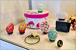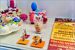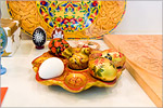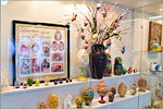 Помимо яиц, на выставке представлены подставки для яиц, открытки к православному празднику и миниатюрные фигурки зайчиков и мышек, в основе которых — пушистые почки вербы.