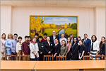 Сотрудник отдела международного сотрудничества и образования ОГУ Ольга Наумова провела презентацию Оренбургской области, ее столицы и особенно подробно остановилась на главном вузе региона. Слушателям показали фильм об университете на английском языке и ролик о кампусе вуза, вручили пакеты с сувенирной продукцией университета. Ребята посетили читальный зал редких и ценных книг, музей истории университета, полюбовались видами Оренбурга со смотровой площадки научной библиотеки ОГУ.