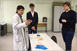 В конце лекции для школьников провели в лаборатории кафедры биохимии и микробиологии экспериментальную оценку наличия у бактерий химических индукторов, позволяющих им обмениваться сигналами.