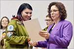 В Татьянин день ректор ОГУ Жанна Ермакова провела торжественную встречу с лучшими студенческими подразделениями, чтобы поздравить актив вуза с праздником и вручить им 100 фирменных пряников, специально изготовленных к 65-летию Оренбургского госуниверситета.