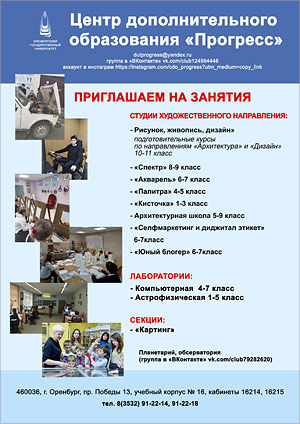 Центр дополнительного образования «Прогресс» приглашает школьников в студии и секции.