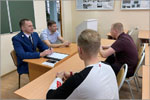 Старший прокурор отдела кадров прокуратуры Оренбургской области Александр Челышев и прокурор отдела кадров прокуратуры Оренбургской области Виталий Кнуров отметили наиболее важные аспекты деятельности органов прокуратуры, осветили отличительные особенности прокурорских работников. Особое внимание было уделено требованиям, предъявляемым к лицам, назначаемым на должности прокуроров. Обучающиеся активно использовали возможность получить исчерпывающую информацию по возникающим вопросам, касающихся трудоустройства выпускников.
