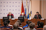 В разговоре приняли участие ректор ОГУ Сергей Мирошников и ректор ОГПУ Светлана Алёшина. Слушателями выступили представители Аэрокосмического института и Института наук о Земле.