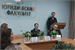 Присутствующие на встрече старший лейтенант юстиции Дарья Сергеевна Борисова и лейтенант полиции Владимир Владимирович Крестиков поделились примерами своей практической деятельности и профессионального становления.