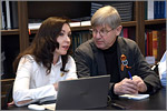 Координатор студенческого патриотического клуба «Я горжусь» Наталья Дегтярева и директор НИИ истории и этнографии Южного Урала Веналий Амелин. Открыть в новом окне [141 Kb]