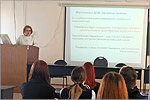 Доцент кафедры БУАиА Елена Егорова рассказала ребятам об основных направлениях подготовки обучающихся, об истории развития кафедры, о профессорско-преподавательском составе, научных и иных ее достижениях. Особый акцент был сделан на правилах приема абитуриентов и порядке работы приемной комиссии.