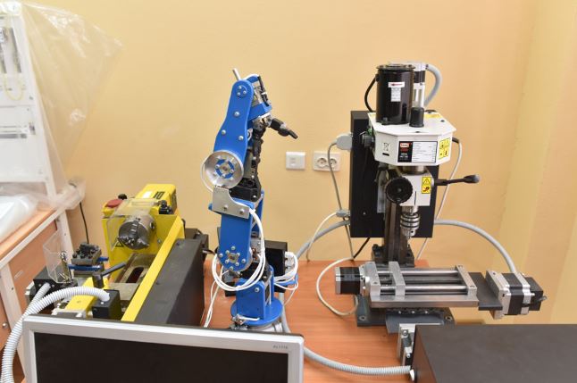 Модернизация комплекса малогабаритного оборудования, управляемого компьютером по разработанным программам, включающего настольные токарный и фрезерный станки, а также промышленный робот и склад-стеллаж, позволила существенно расширить его технологические возможности.