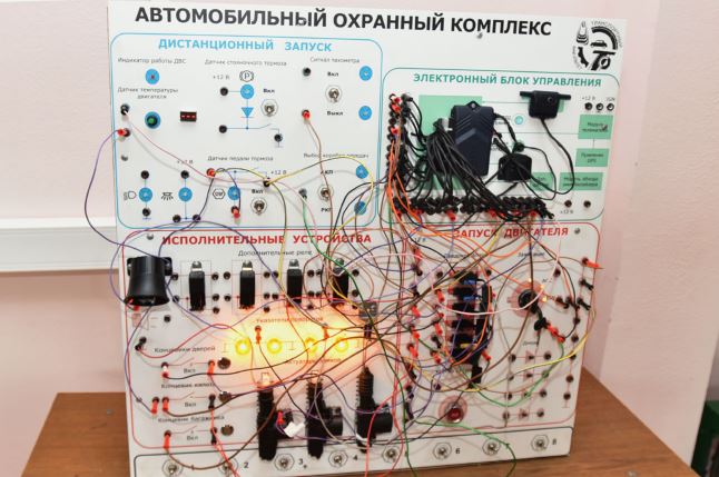 Стенд-тренажер позволяет ознакомиться с устройством и работой автомобильного охранного комплекса и приобрести навыки самостоятельной сборки схемы автосигнализации с последующей проверкой ее работоспособности.