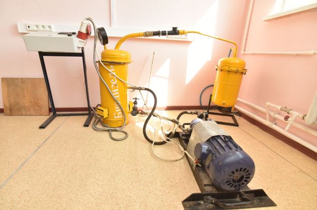 Стенд оснащен двумя емкостями 25 и 65 литров, двумя преобразователями частоты, двумя насосами, регулируемой запорной арматурой и программируемым логическим контроллером. На лабораторном стенде возможно проведение широкого спектра учебных работ по исследованию систем автоматизации и работы насосов в различных режимах с одиночным, последовательным и параллельным включением, разработке систем визуализации технологических процессов.