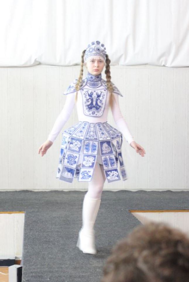Экспериментальные образцы индивидуальных детских костюмов для шоу-индустрии изготовлены путем рисования декоративных элементов пластиковой нитью.