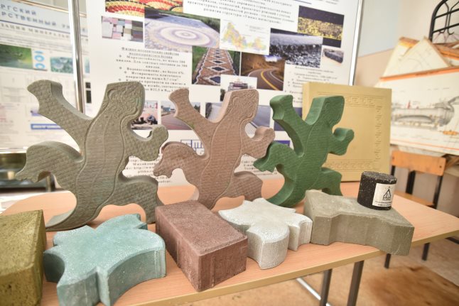 Натурный макет позволяет ознакомиться с возможностью получения и рационального использования композиций дорожных бетонов на основе традиционных битумных вяжущих, вяжущих гидратационного твердения и связующего на основе серы. Область применения от архитектурного оформления придорожных и дворовых территорий до создания сверх износо- и коррозионностойких покрытий.
