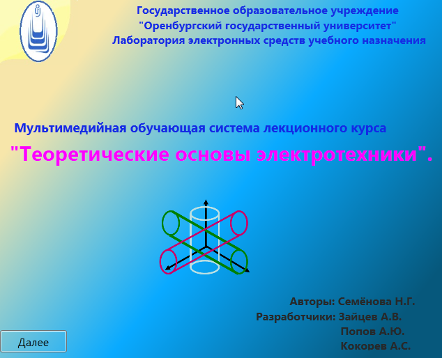 Мультимедийная обучающая система лекционного курса «Теоретические основы электротехники» предназначена для проведения лекционных занятий по дисциплине «Теоретические основы электротехники» студентам электроэнергетических специальностей.