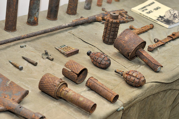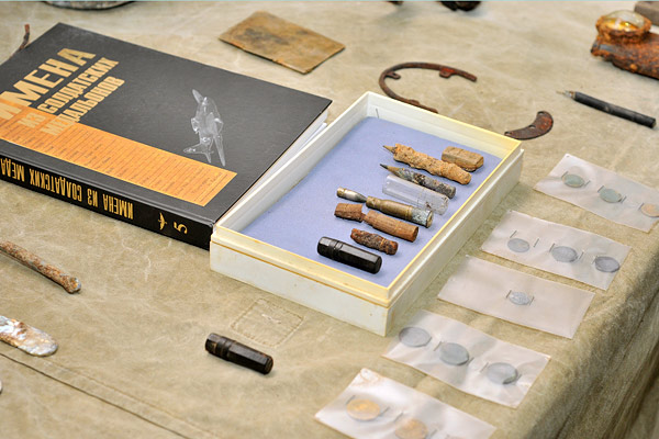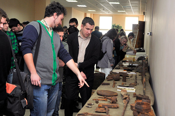 Оренбургский областной поисковый клуб «Патриот» показал находки, сделанные непосредственно на местах сражений Великой Отечественной войны: подлинное оружие (винтовки, штыки, пулемётные диски и ленты, гранаты, гильзы от патронов и снарядов различных калибров, мины), детали амуниции и обмундирования (каски, кобуры, противогазы, фонари), личные вещи (ложки, кружки, расчёски, бритвенные принадлежности) военнослужащих Красной Армии и немецкого вермахта, фашистские листовки с призывами сдаваться в плен и многое другое. Особый интерес у зрителей вызвали солдатские медальоны — металлические, стеклянные, деревянные, эбонитовые капсулы, в которые закладывались личные данные советских бойцов для опознания на случай смерти. Студенты и школьники, не испытавшие ужасов войны, смогли не только воочию увидеть её свидетельства, но и буквально прикоснуться руками к живой истории, получить увлекательную консультацию членов поисковых отрядов, среди которых были их сверстники из числа учащихся ОГУ.