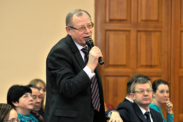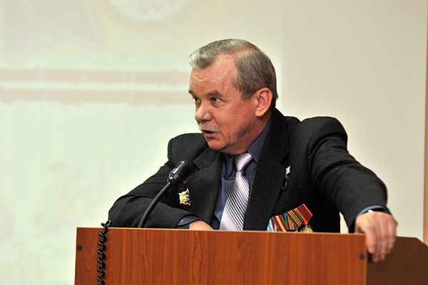 С основным докладом по теме «Ограниченный контингент советских войск в Афганистане (1979–1989 гг.). Миссия пребывания» выступил доцент ОГАУ, кандидат исторических наук, полковник в отставке, кавалер ордена «За службу Родине в Вооружённых Силах СССР» Владимир Михайлович Танаев. По-военному чётко и аргументировано он обосновал необходимость ввода советских войск на территорию Афганистана с учётом сложной внутренней обстановки в данной стране, геополитического соперничества ведущих держав в ключевом Центральноазиатском регионе, необходимости защиты стратегических интересов Советского Союза на дальних южных подступах. Ветеран поделился и личными впечатлениями от страны, её жителей, рассказал об условиях повседневного быта и решении военных задач советским контингентом в республике. Сам Владимир Михайлович проходил службу на территории Афганистана в период с марта 1983 г. по январь 1985 г. в автомобильных войсках, на должности помощника начальника полиотдела 59-й армейской бригады материального обеспечения. Его часть дислоцировалась в Келагайской долине, в 5–7 км от г. Пули-Хумри провинции Баглан. Бригада обеспечивала подвоз боеприпасов, топлива, продовольствия, вещевого имущества во все советские гарнизоны Афганистана на участке от железнодорожного разгрузочного пункта в Хайратоне через перевал Саланг, Баграм, Кабул, Джелалабад, Газни, Шахджой и до Гардеза. Неоднократно В. М. Танаев и лично проводил в качестве старшего автоколоны из 40–50 грузовиков КАМАЗ со всем необходимым для советских воинов через обстрелы, засады, подрывы фугасов по территориям, контролируемым душманами. Не случайно автомобильные войска в Афганистане получили прозвище «воюющие всегда». При этом простые военные водители проявляли подлинный героизм: с изрешечёнными пулями телами из последних сил доводили грузовики до пункта назначения, с риском для жизни тушили горящий транспорт с боеприпасами под угрозой взрыва. На памяти Владимира Михайловича за неполные 2 года боевых действий в бригаде погибли 54 человека, были списаны до 500 единиц повреждённой автотехники. Из числа личного состава награждены медалями «За боевые заслуги» и «За отвагу» — 90 солдат и офицеров, орденами Красной Звезды — 18 воинов и орденами «За службу Родине в Вооружённых Силах СССР» — 17 человек.