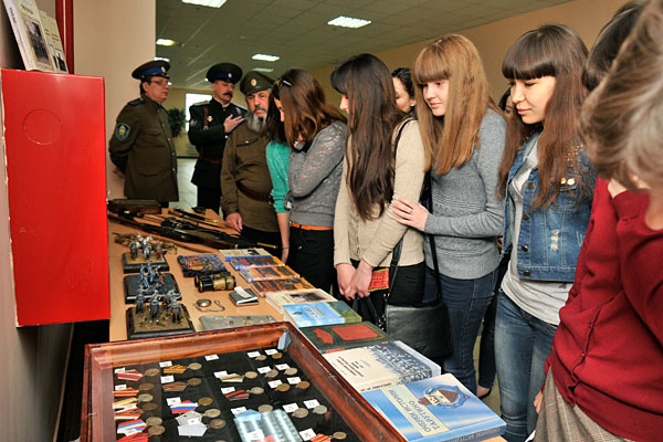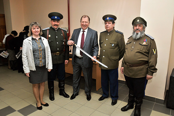 Перед началом пленарного заседания в фойе университетской библиотеки были развёрнуты сразу 3 выставки. Музей казачьей славы «Славянский» представил подлинное оружие, боевые награды и фотографии времён Первой мировой войны. Экспозиция Государственного архива Оренбургской области объединила уникальные документы о жизни региона в этот период. Наконец, научная библиотека ОГУ выставила замечательную подборку книг об участии оренбуржцев в Первой мировой войне и истории местного казачества.