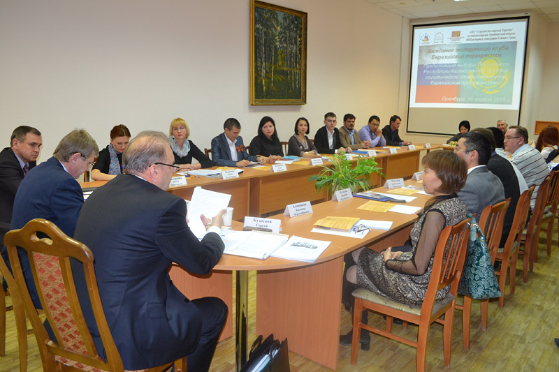 В этой связи 10 апреля 2015 г. в научной библиотеке Оренбургского государственного университета было проведено заседание экспертного клуба «Евразийский перекресток» по теме «Проблема обеспечения политической стабильности на евразийском пространстве в свете предстоящих выборов президента Республики Казахстан». Организаторами мероприятия совместно выступили НИИ истории и этнографии Южного Урала ОГУ, АНО «Содружество народов Евразии» и Ассамблея народов Оренбургской области. В обсуждении грядущих выборов приняли самое заинтересованное участие представители органов власти, национально-культурных объединений, СМИ, ученые, педагоги и студенты различных оренбургских вузов из числа граждан России и Казахстана.