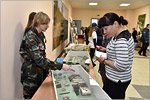 Перед началом конференции в фойе научной библиотеки ОГУ были развёрнуты выставки находок поисковых отрядов на местах сражений Великой Отечественной войны, современных книг и газет военного времени. Благодаря им молодое поколение, студенты и школьники смогли погрузиться в события 75-летней давности, увидеть оружие и личные вещи советских воинов, их нательные крестики и смертные медальоны, прочитать боевые сводки и передовицу «Правды» переломного декабря 1941 г.