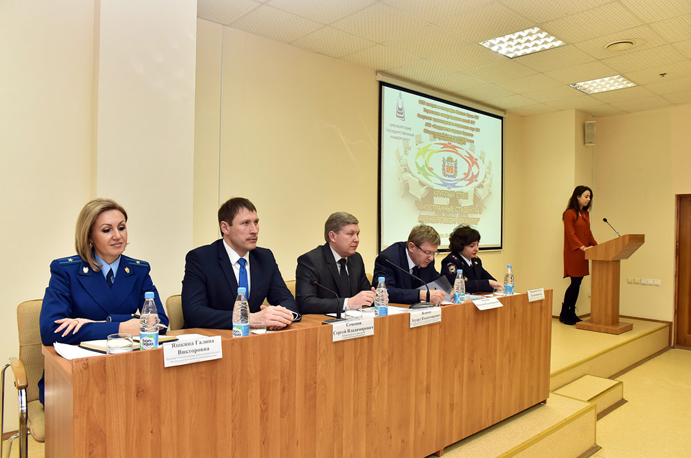 Спецификой своего взаимодействия с иностранными студентами на круглом столе поделились представители миграционных и надзорных органов, специалисты оренбургских вузов, ответственные за международное сотрудничество, воспитательную работу, обучение русскому языку: прокурор по надзору в сфере межнациональных отношений Галина Яшкина, начальник отдела управления по делам миграции областного УМВД Ольга Манахова, начальник отдела международных связей ОГАУ Ольга Максимова, декан филологического факультета ОГПУ Ольга Косянова и др.